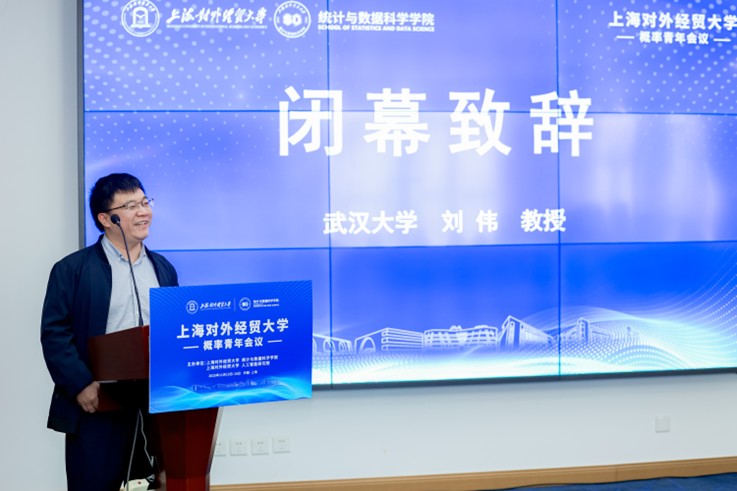 武汉大学数学与统计学院副院长刘伟教授在闭幕式总结致辞中指出,此次概率青年会议的成功举办是上海对外经贸大学统计与数据科学学院推进概率论学科建设的一项重要举措。他对会议的高效组织与取得的丰硕成果给予充分肯定,认为会议切实促进了概率论领域的学术交流与学科发展。