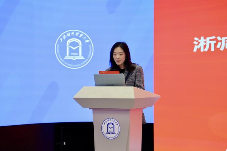 国际商务外语学院教师陈之瑜作为优秀指导教师代表发言。她分享了跨学院协作打破学科壁垒、促进教学相长的实践体会,强调了协同育人在培养学生综合素质方面的重要作用。她呼吁更多师生积极参与跨学科交流与实践项目,共同为品牌强国建设和青年成长贡献力量。