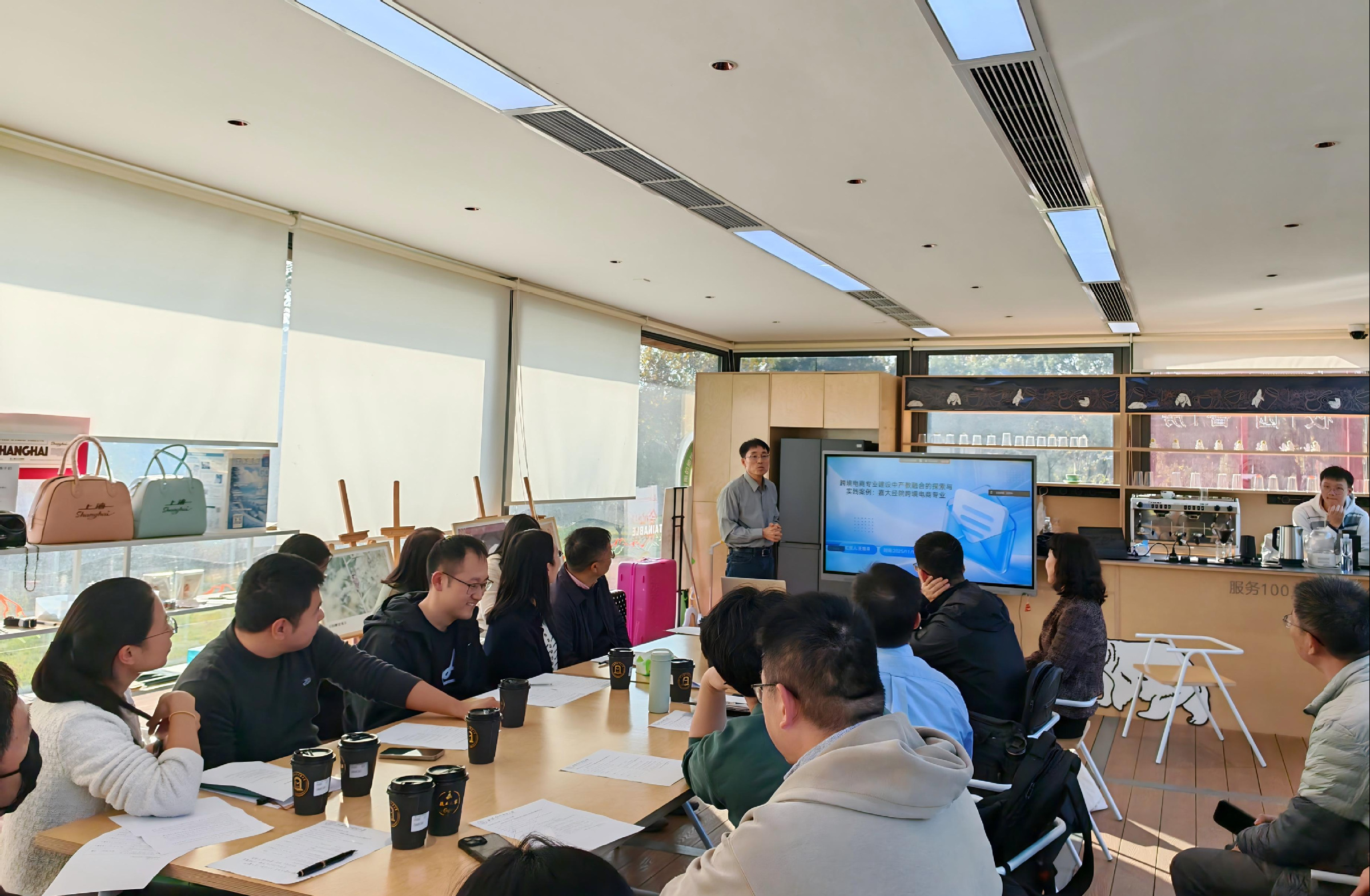 11月18日,上海对外经贸大学在松江校区校园文旅书房成功举办思源教学创新工作坊第32期专题活动——新贸易业态下产教融合模式创新与实践专题研讨会。本次活动由国际经贸学院主办,以“线上+线下”联动模式搭建校地校际交流平台,汇聚多方智慧力量。线上方面,活动联动东西部联合虚拟教研室的西藏大学、华东政法大学、大连民族大学等高校同仁云端参会;线下特别邀请上海立信会计金融学院教师到场交流,国际经贸学院国际经济与贸易系全体教师参与,共同为新贸易业态下的经贸人才培养探索新路径。