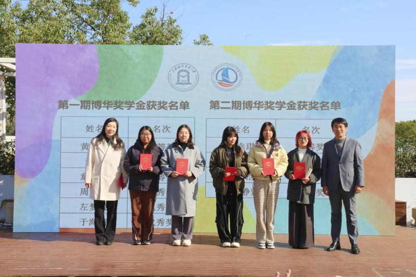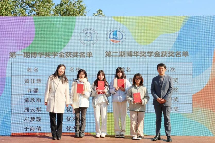 叶玲玲和学院党委副书记(主持工作)田纪鹏共同为博华数字会展人才班奖学金获得者颁奖。