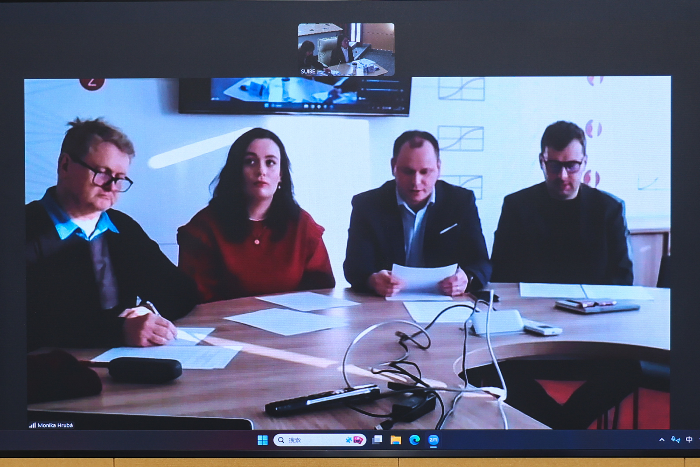 11月19日下午,学校与捷克布杰约维采商业技术学院(以下简称“布杰商院”)在线召开孔子课堂(以下简称“布杰孔堂”)理事会。学校校长、布杰孔堂中方理事长汪荣明与布杰商院校长、布杰孔堂外方理事长Marek Vochozka共同主持此次会议。布杰商院副校长Vojtech Stehel,学校外事处处长金泉,财务处处长殷枫,外事处副处长张水辉等中外方理事会成员出席会议。布杰孔堂中方院长郝文钧,外方院长Monika Hruba以及布杰商院董事会成员Vilem Kovak、Robert Sinkner与学校外事处相关工作人员列席会议。