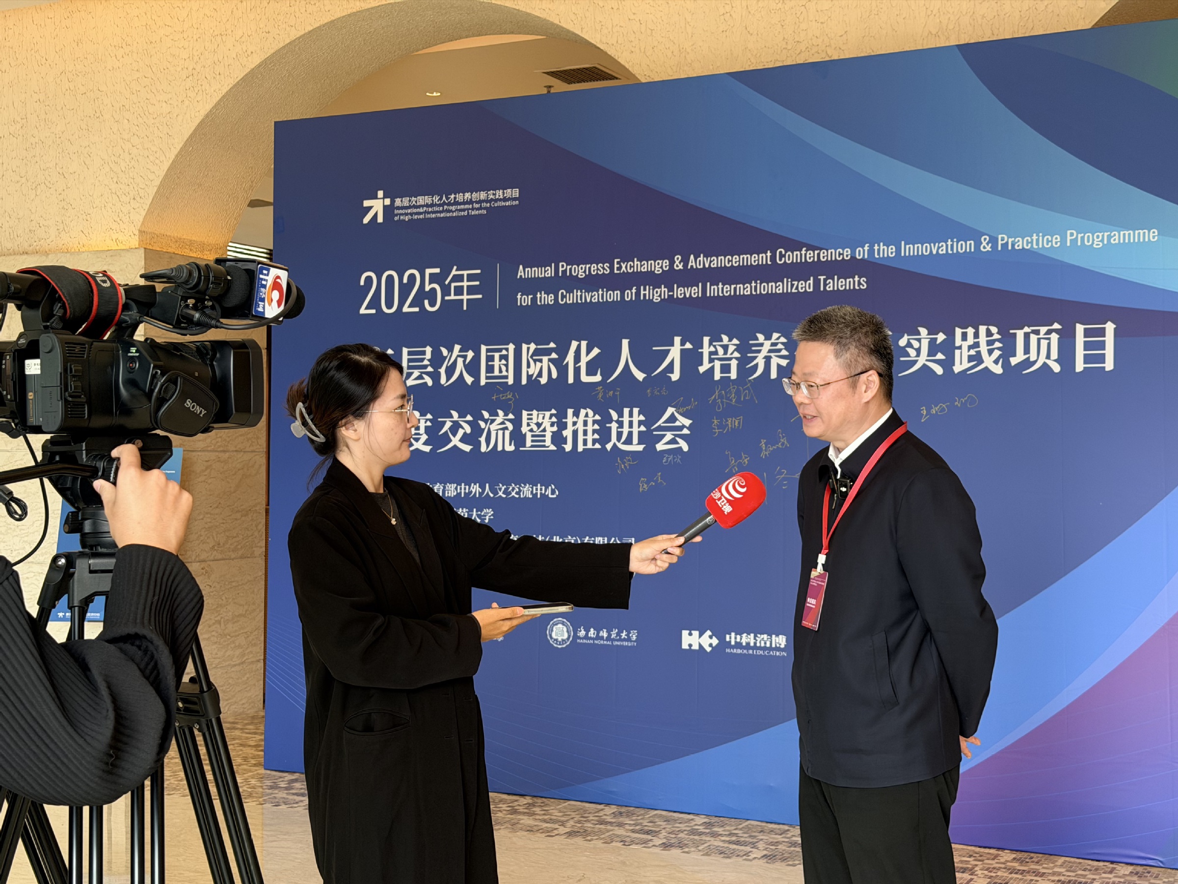 会后,三沙卫视对章益国进行采访,就“面向建设更高水平开放型经济新体制的要求,学校将如何进一步优化国际化人才培养体系”等问题进行交流。