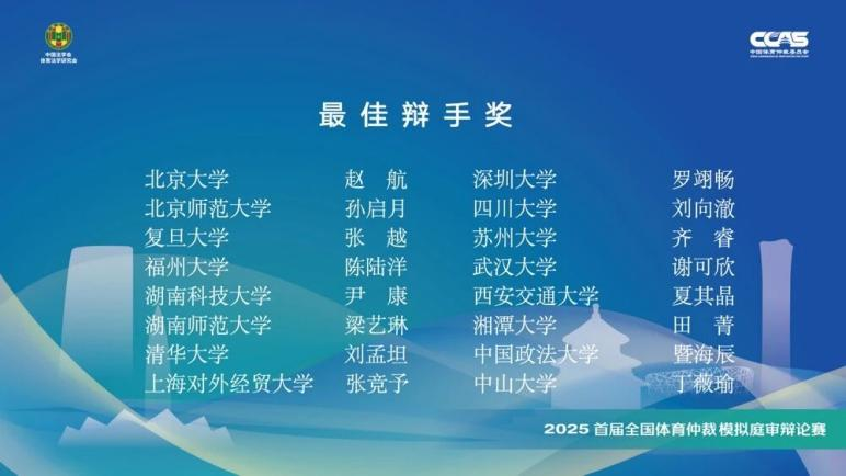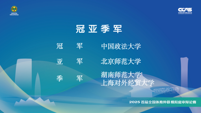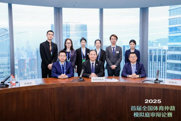 首届全国体育仲裁模拟庭审辩论赛由中国法学会体育法学研究会与中国体育仲裁委员会联合主办,国家体育总局体育仲裁中心承办,深圳国际仲裁院提供支持,是2025年我国体育法治实践的一项开创性专业赛事。本届赛事旨在落实新修订的《中华人民共和国体育法》,通过模拟真实的体育仲裁庭审场景,提升参赛者的法律素养、辩论能力及体育仲裁实务操作水平,促进体育仲裁知识的普及与交流,发现和培养专业精通、素质过硬的体育仲裁人才,推动体育仲裁事业的健康发展。