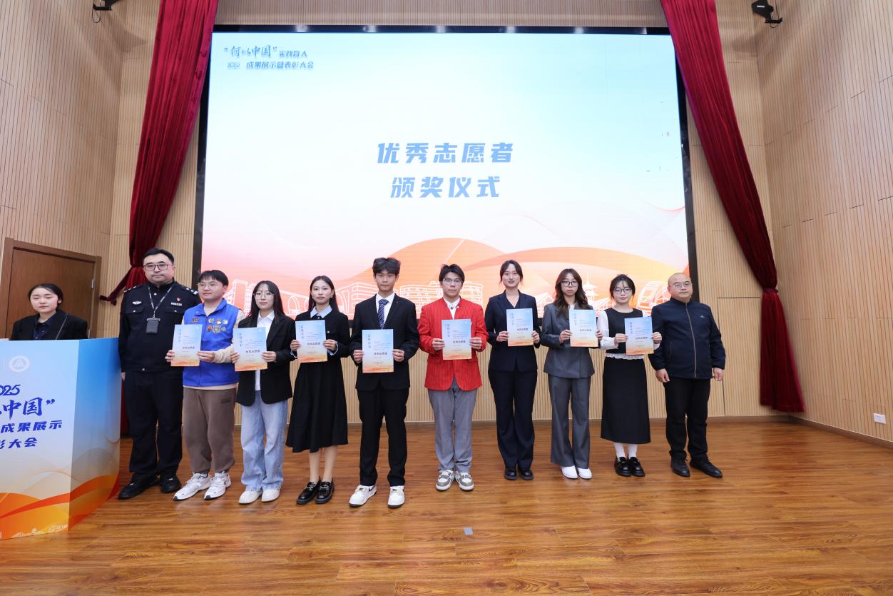 与会领导分别为优秀校外实践导师、优秀校内指导教师、优秀志愿者、优秀志愿服务组织者和暑期社会实践获奖队伍颁奖。