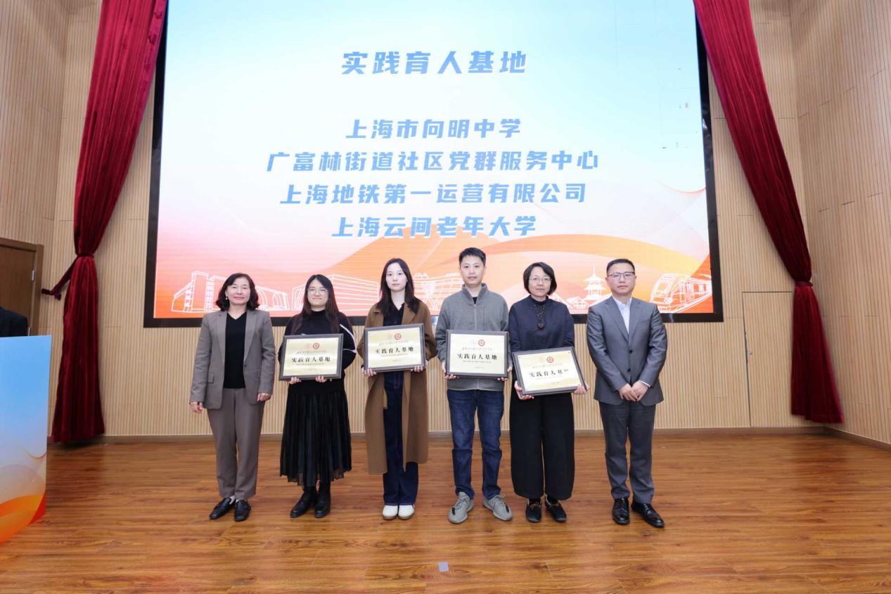 欧阳君、裴瑱为新一批会计学院校外实践育人基地授牌。为深入贯彻落实党的二十届四中全会关于新时代立德树人工程的战略部署,拓宽校企、校地协同育人渠道,学院与上海市向明中学、广富林街道社区党建服务中心、上海地铁第一运营有限公司、上海云间老年大学四家单位正式达成育人合作,助力学生将所学知识和爱国情怀转化为服务“中国之治”的实践方案。