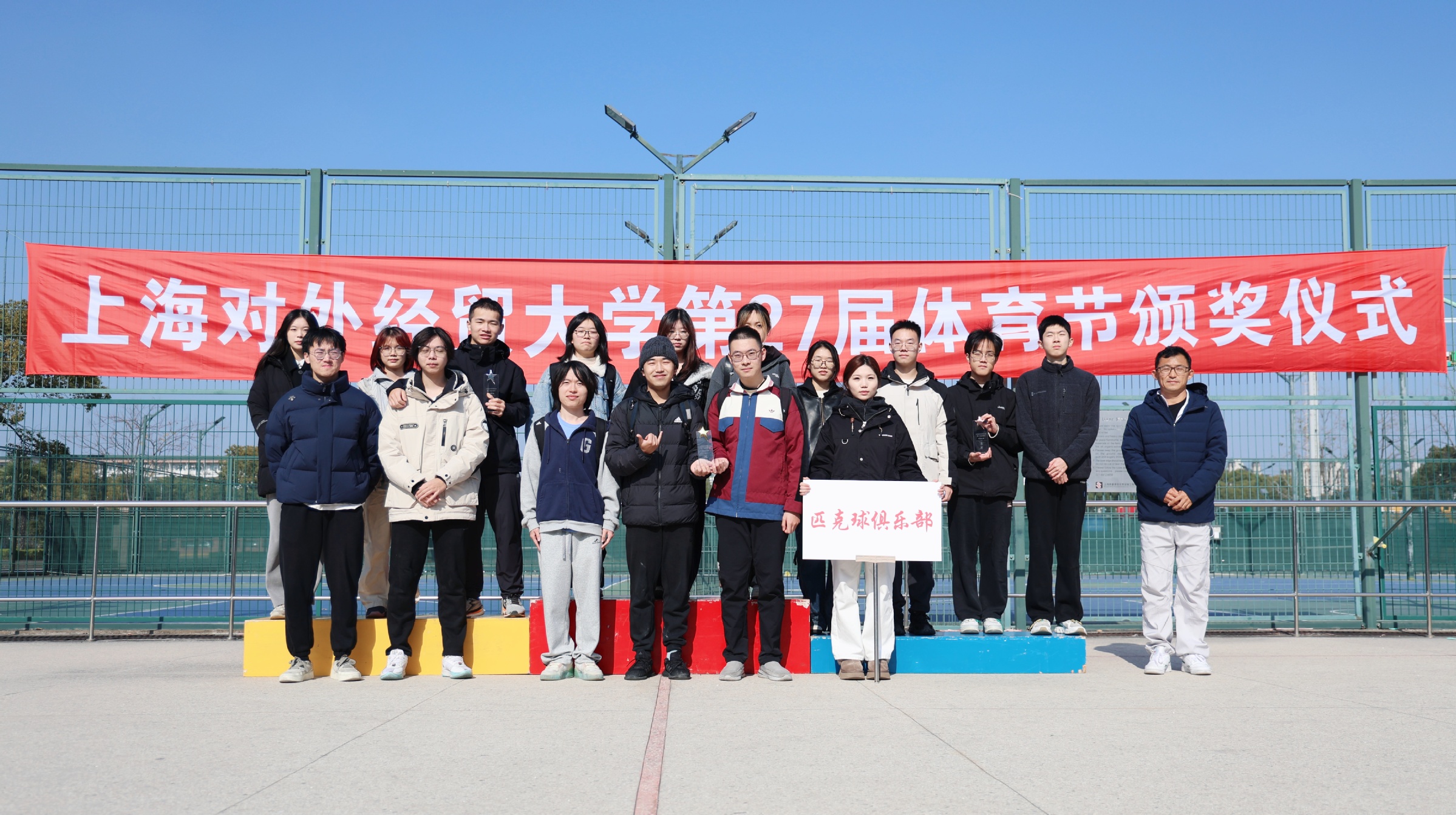 12月18日中午,上海对外经贸大学第二十七届体育节颁奖仪式在学校松江校区室外轮滑场举行。本届体育节由体育健康学院主办,历时三个多月,覆盖25个学生体育俱乐部,吸引近2000名学生踊跃参与,近600人次荣获团体或个人奖项,充分践行了“全员参与、全院联动、全程育人”的办赛初心。令人振奋的是,2025年我校学子在校外赛场同样表现卓越,共斩获全国性比赛奖牌30枚、上海市级比赛奖牌82枚,全面展现了上经贸大学子昂扬向上、追求卓越的精神风貌。
