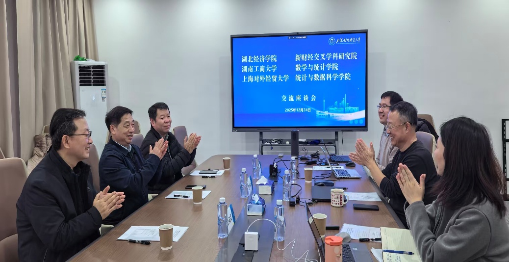 12月24日,湖南工商大学数学与统计学院院长谢小良教授、湖北经济学院新财经交叉学科研究院院长张耀峰教授及国有商业银行的专家代表来访我校,与统计与数据科学学院相关负责人在长宁校区举行座谈交流。统计与数据科学学院党委书记黄静、院长张日权、副院长李睿出席,会议由张日权主持。