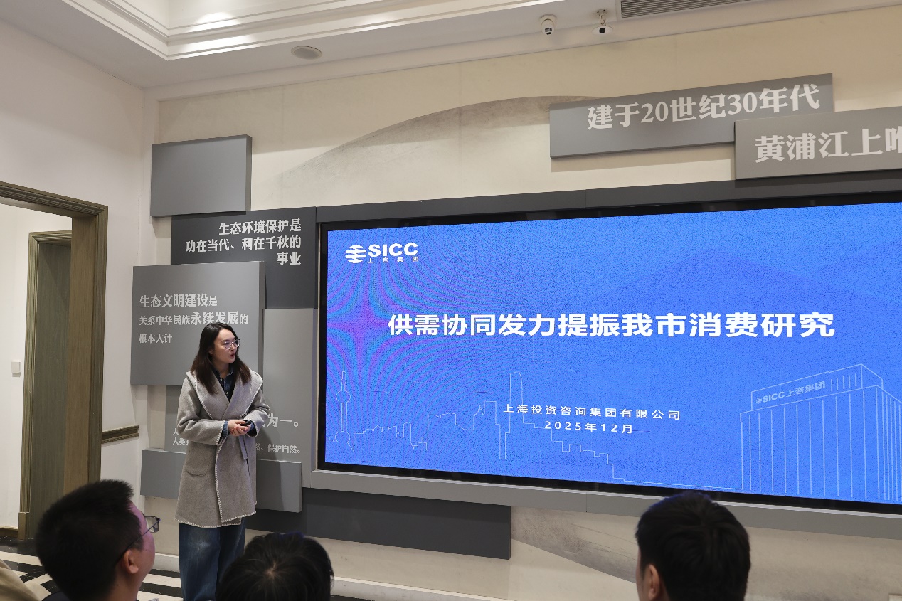 签约仪式结束后,与会三方围绕“提振上海消费”这一核心议题展开了深度研讨。上海投资咨询集团有限公司智库研究中心研究员陈皓雪作了题为《供需协同发力提振我市消费研究》的报告。我校经济统计系系主任李佩瑾作了题为《城市居民收入、消费的国际比较研究》的报告。