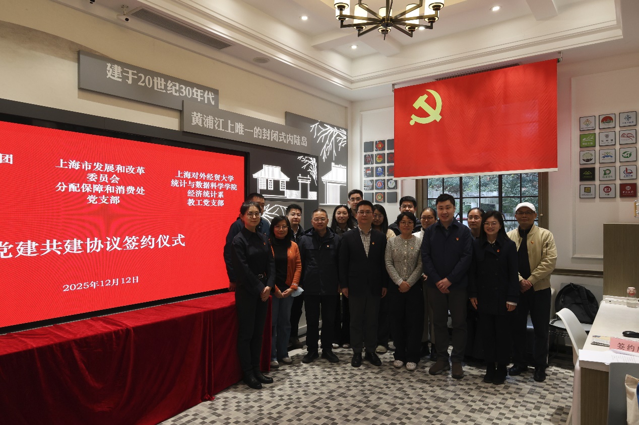 为深入学习贯彻党的二十届四中全会精神,积极探索“党建+业务”深度融合新模式,充分发挥高校、政府部门与智库企业的协同优势,近日,统计与数据科学学院经济统计系教工党支部联合上海市发展和改革委员会分配保障和消费处党支部、上海投资咨询集团有限公司智库研究中心党支部,共同举办党建共建签约仪式暨“提振上海消费”专题研讨活动。市发改委分配保障和消费处处长张丽、副处长贺满林,上咨集团副总经理周明、智库研究中心副主任池彦琪、副主任于淑敏,统计与数据科学学院经济统计系教工党支部书记司继春、系主任李佩瑾等党员代表共同参加了本次活动。