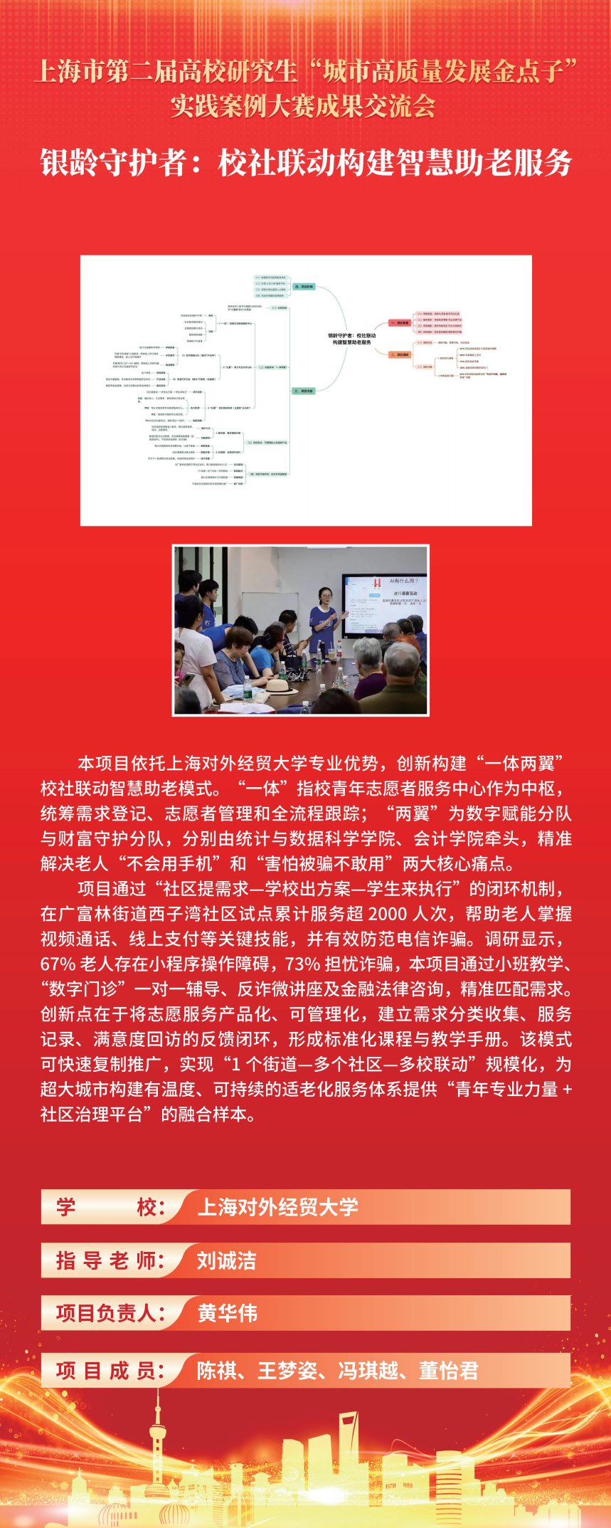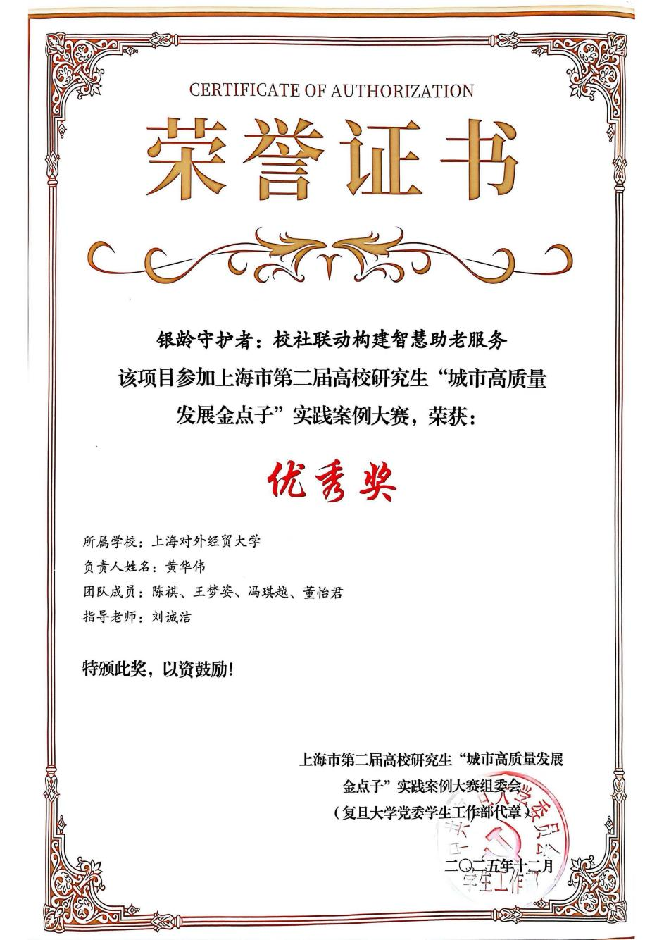 在党委研工部的精心组织和各学院的积极推荐下,我校共报送15个案例参赛。其中马克思主义学院研究生黄华伟、陈祺、王梦姿、冯琪越和董怡君撰写的案例《银龄守护者:校社联动构建智慧助老服务》荣获优秀奖。学校荣获“最佳组织奖”。