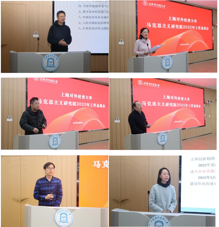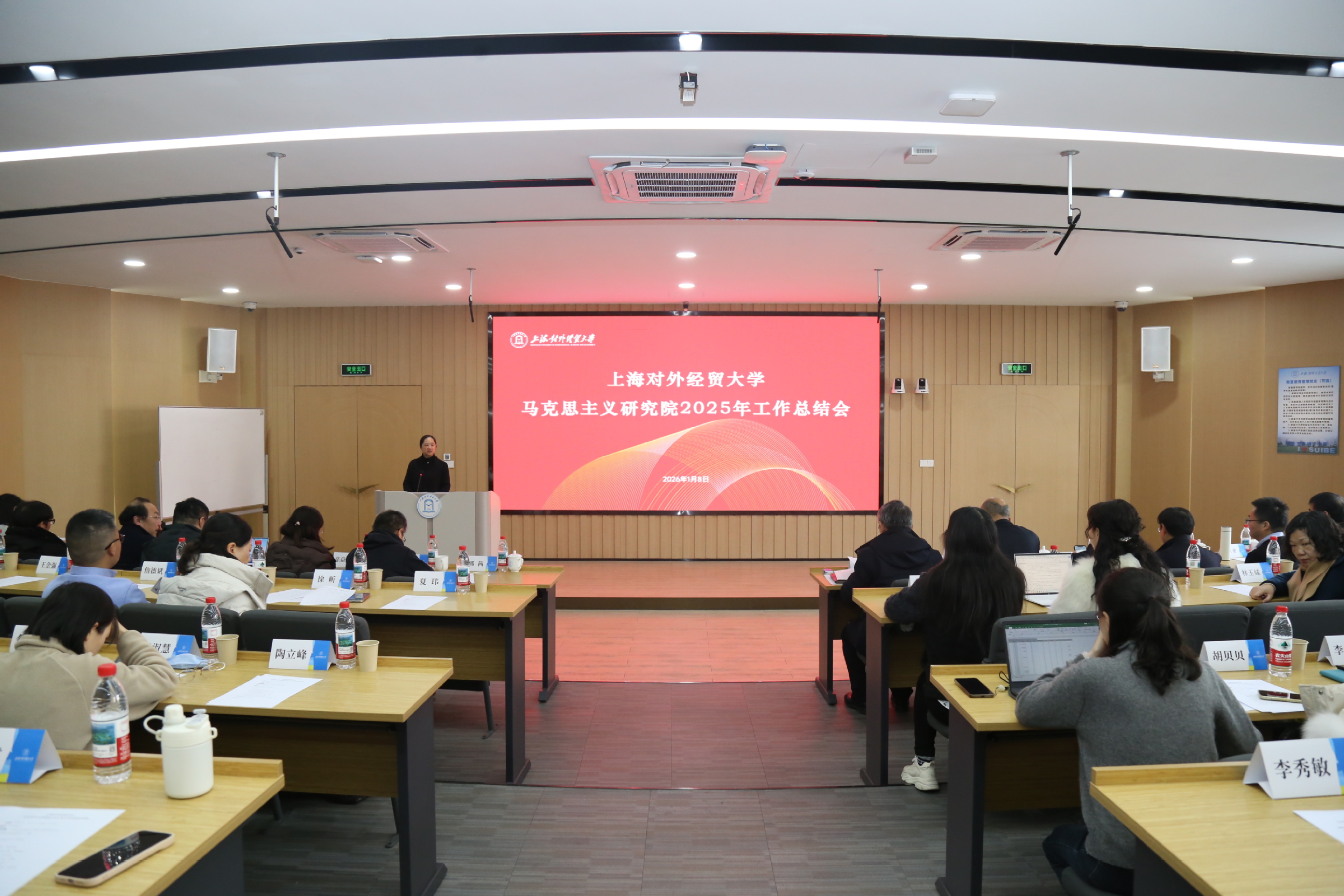 会上,马研院常务副院长郭茜通报了马研院2025年工作总体情况。在上海市教卫工作党委和学校党委的坚强领导下,马研院坚持以习近平新时代中国特色社会主义思想为指导,对标上海高校马克思主义研究院支持计划要求,扎实推进内涵式发展取得了较好成效。通过配强领导班子、健全保障体系、打造融合创新团队、完善工作机制、明晰发展规划等举措,初步构建起具有外经贸特色的马研院实体化运行体系;在学科交叉融合课程建设、教材建设、社会实践、学术研究、决策咨询、国际交流合作和队伍建设等方面取得了阶段性成果。