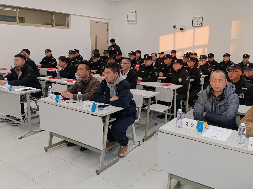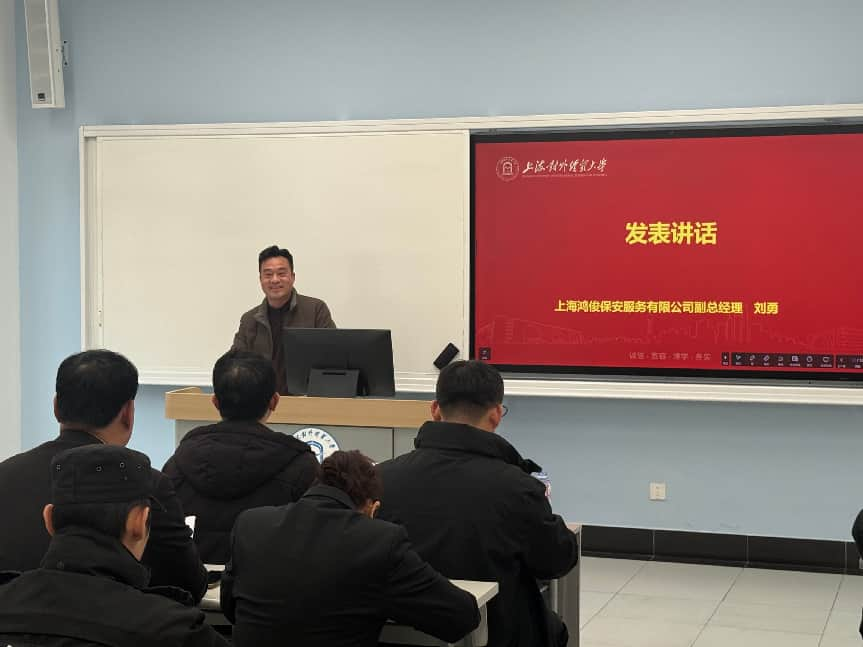 会上,上海鸿俊保安服务有限公司驻校保安管理处项目经理蒋建伟首先作2025年度保安服务工作总结报告。他从坚守维稳底线、严抓门岗管理、深化巡逻防控、锚定消防要务、强化防暴处突、助力大型活动和强化队伍建设等方面,回顾过去一年的安保工作,并提出2026年安保服务工作努力方向,为后续工作奠定坚实基础。