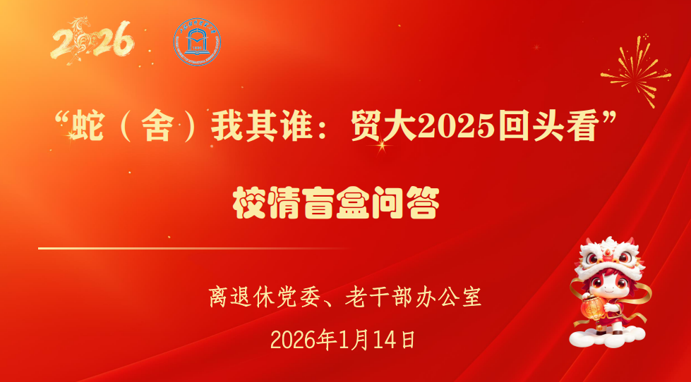 本次座谈会上,离退休党委、老干部办公室以书面形式征求了与会代表对2025年度党委工作的意见和建议。活动还专门筹划实施了题为“蛇(舍)我其谁——2025贸大回头看”校情盲盒问答活动,以盲盒问答的生动形式向与会老同志宣传了我校2025年以来的发展情况,并重点对学校综改方案和“十五五”规划内容进行了解读,在与老同志的互动中,使爱校、荣校的主题深入人心。