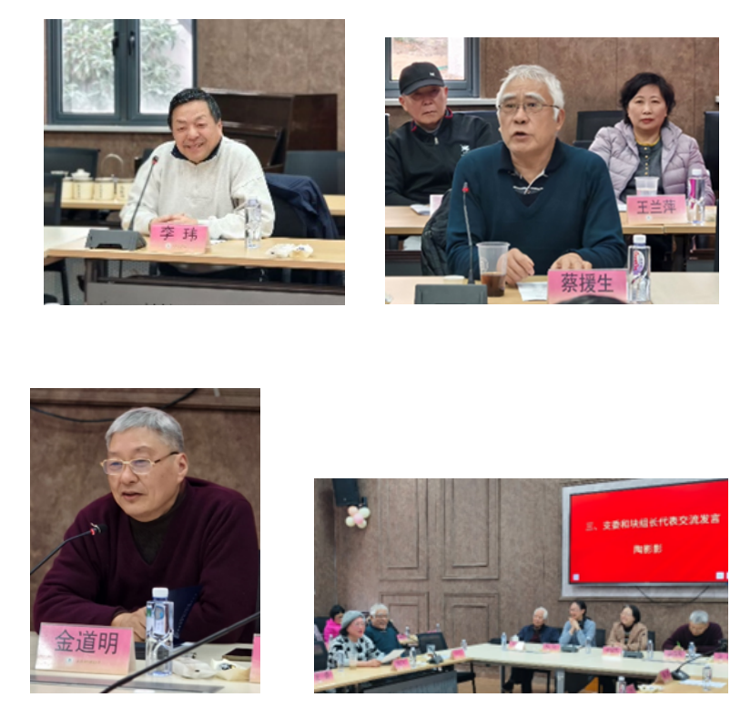 座谈会上,李玮、金道明、蔡援生、陶影影四位同志分别以第二党支部书记、第五党支部书记、徐汇区块组长、第三党支部书记兼普陀区块组长的身份做了发言。李玮在发言中强调做好党组织工作能为老同志带来政治方向感和人生价值感;金道明在发言中强调了离退休党建工作中稳定队伍和传承职责的突出重要性,对党组织换届相关工作提出了建议;蔡援生在发言中建议进一步加强块组工作规范化、标准化建设和对新任块组长的培训指导;陶影影在发言中抒发了对老龄生活的感悟,表示将继续用心用情做好老同志的服务工作,并为座谈会献上了“康定情歌”钢琴独奏曲。