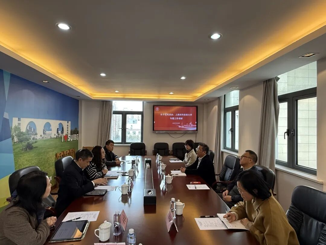 近日,长宁区委统战部副部长、区民宗办主任高峥一行来校调研学校民族宗教工作,长宁区民宗办副主任蔡欣、主任科员徐辰、仙霞新村街道妇联主席(兼统战干部)唐闻颖等陪同调研。校党委统战部副部长程琳参加会议,校党委学工部副部长、学生处副处长冯昕,党委保卫处治安防范科科长闫一博和校民族团结进步联合会会长金镜玉参与座谈。