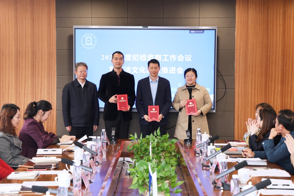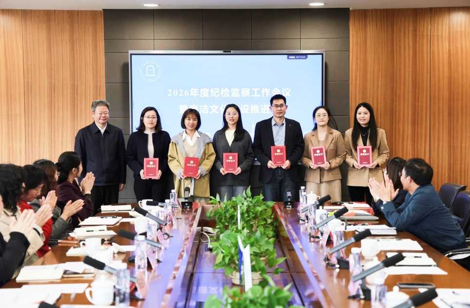 会议对2025年度“优秀纪检工作者”邱子桐、商志民、关印,以及入围教育部高校廉洁教育系列活动遴选名单的项目进行了表彰。