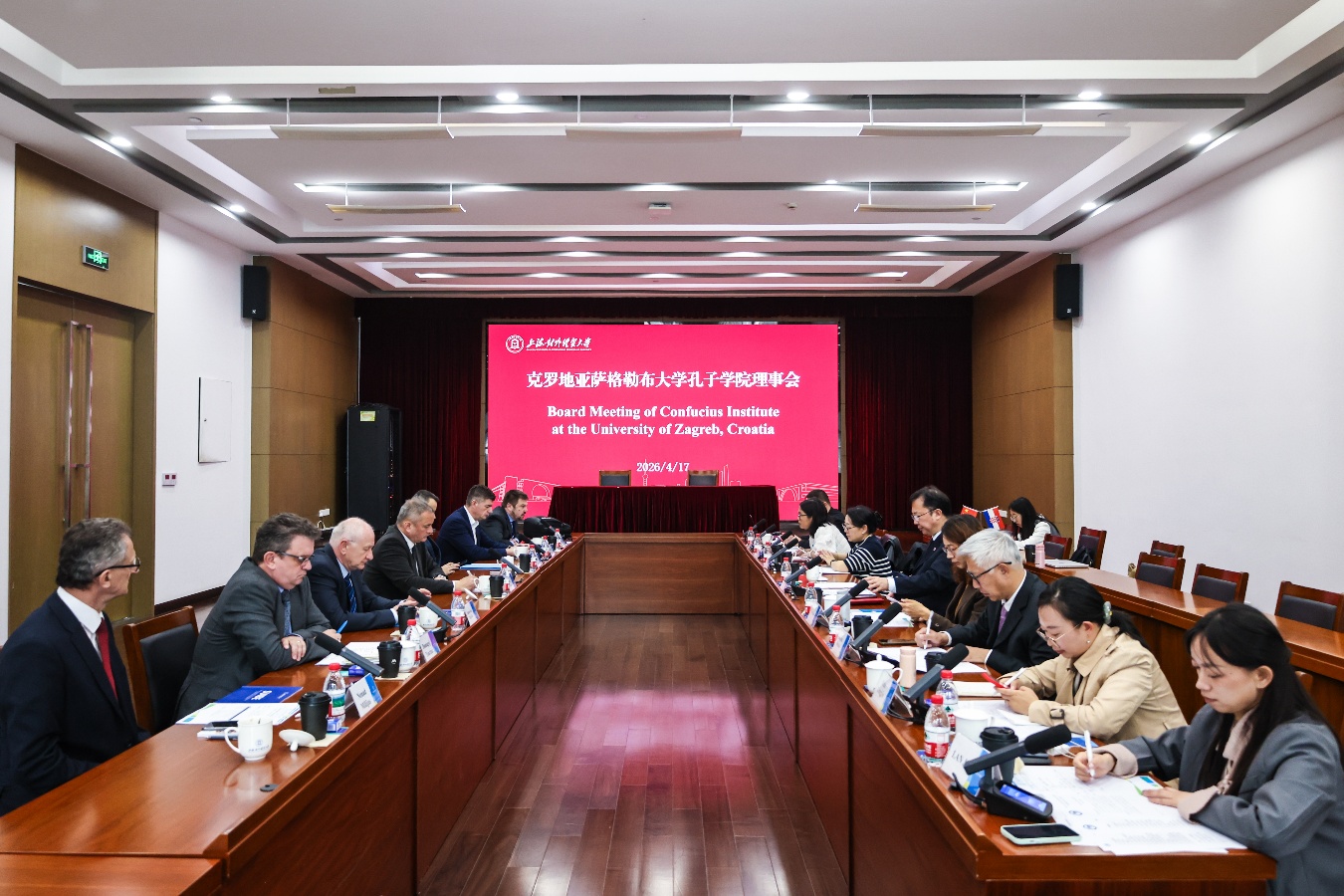汪荣明代表学校欢迎访华团一行到访,并介绍了学校最新发展情况。他指出,学校与萨格勒布大学共建的萨大孔院经过十余年的发展,已成为两国教育文化合作的典范,为增进人民相互了解与友谊作出了积极贡献。双方互访频繁、师生交流活跃,希望萨大孔院在深耕中文教育主业的同时,进一步突出商务、旅游、创意产业等办学特色,切实发挥中克教育人文交流的桥梁作用,努力建设成为中东欧地区的示范孔子学院。他还表示,非常高兴与奥西耶克大学签署谅解备忘录,期待两校以此为起点,开展广泛而深入的合作。