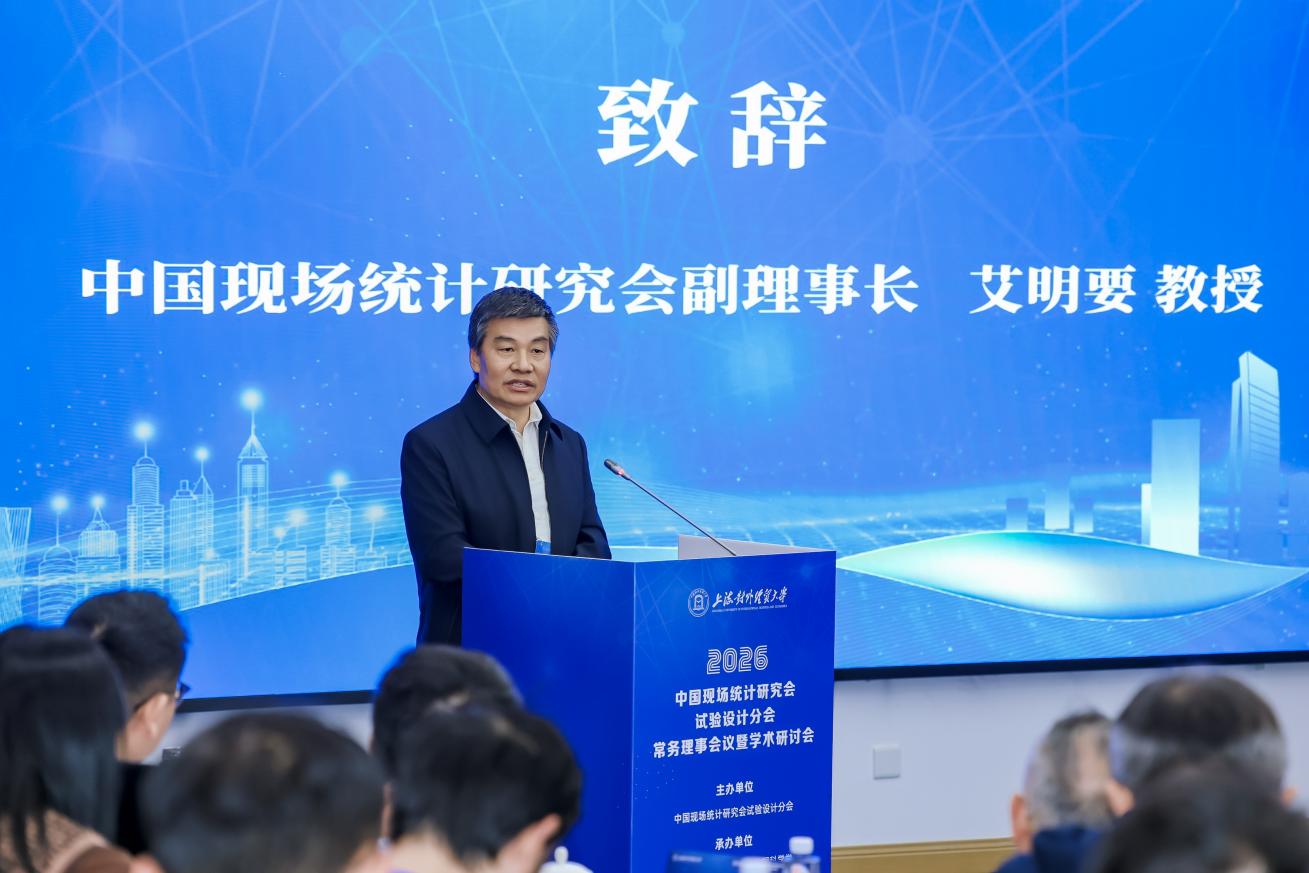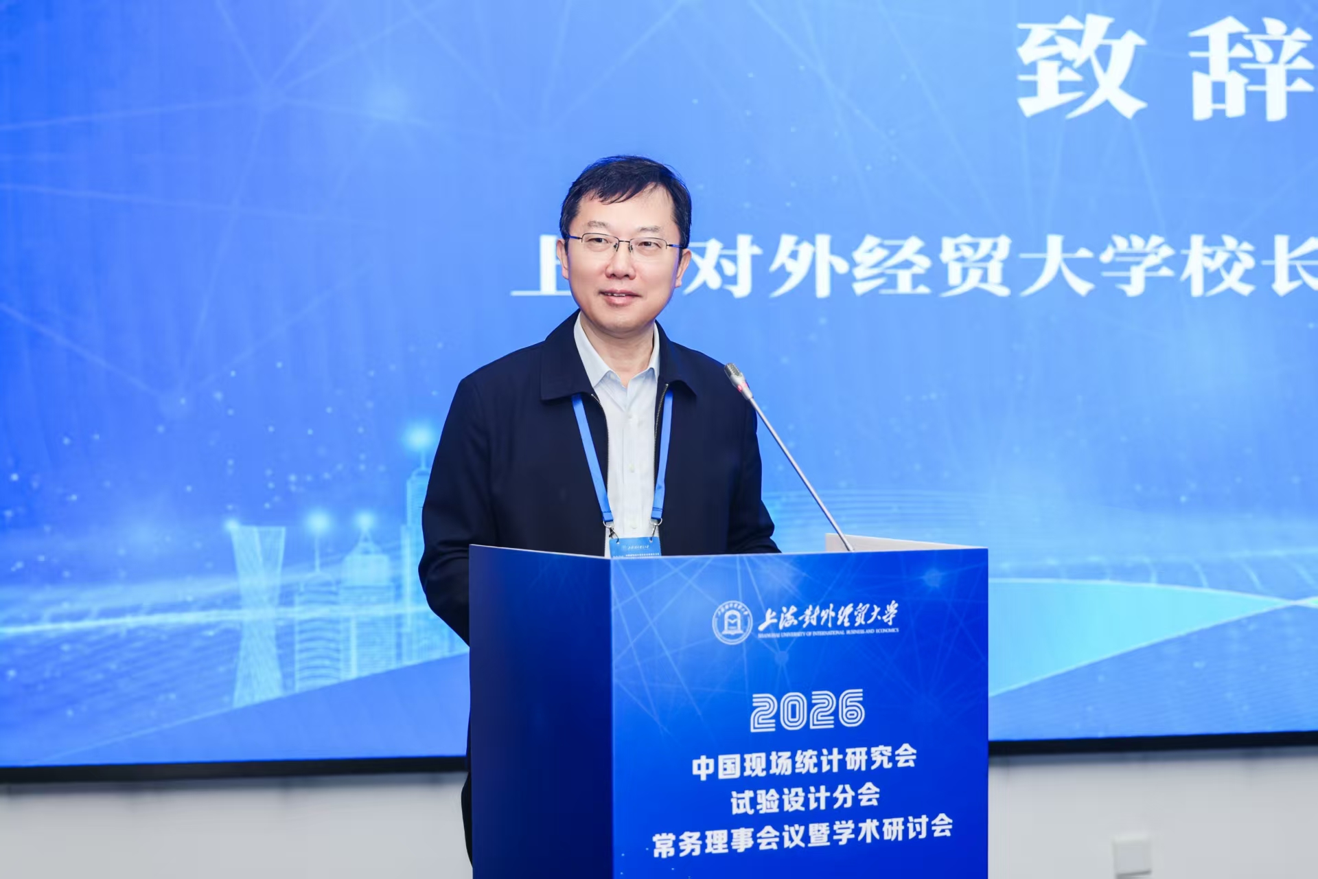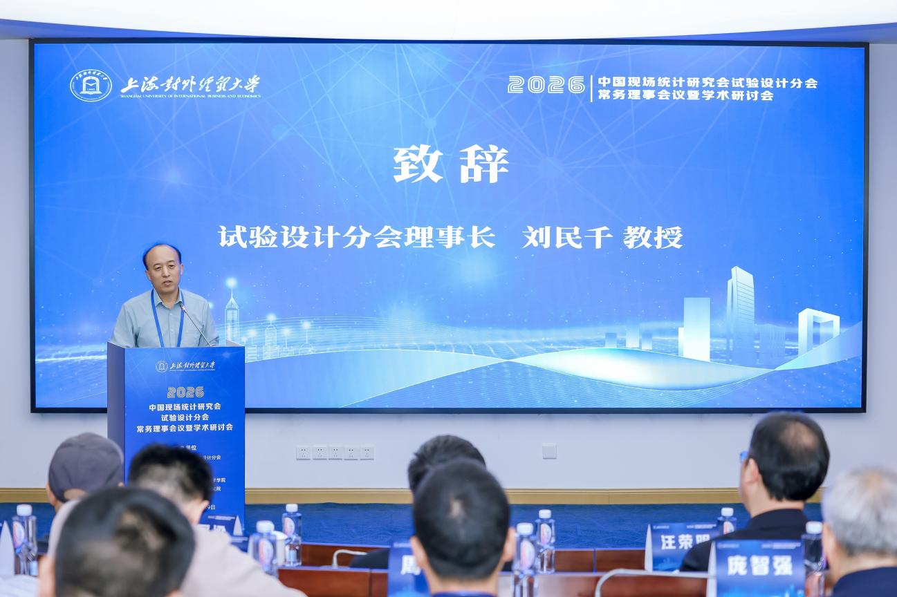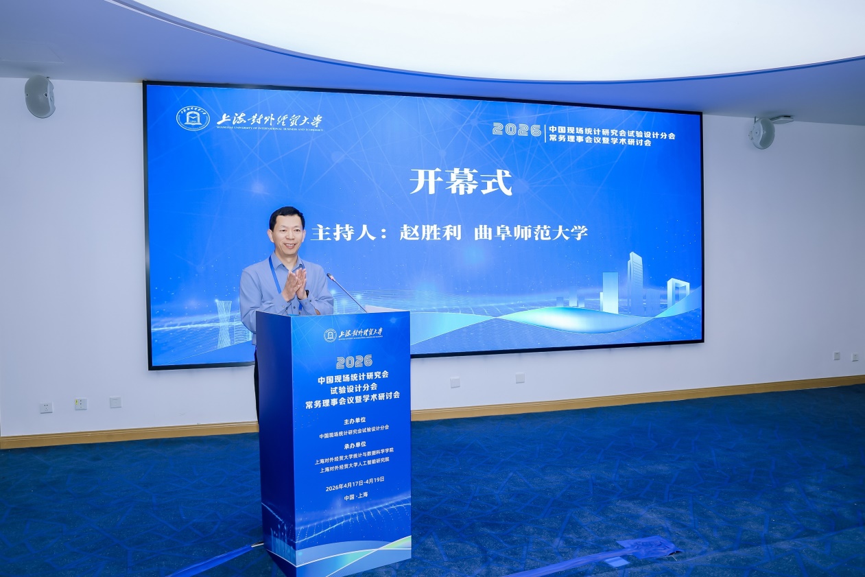 4月17日至19日,由中国现场统计研究会试验设计分会主办、上海对外经贸大学统计与数据科学学院、人工智能研究院承办的“中国现场统计研究会试验设计分会2026年常务理事会议暨学术研讨会”在我校长宁校区举行。来自北京大学、南开大学、香港中文大学、中国科学院、华东师范大学、东北师范大学、国防科技大学、南方科技大学、曲阜师范大学等40余所高校和科研机构的60余位试验设计领域专家学者出席会议。会议开幕式由中国现场统计研究会试验设计分会副理事长兼秘书长、曲阜师范大学赵胜利教授主持。