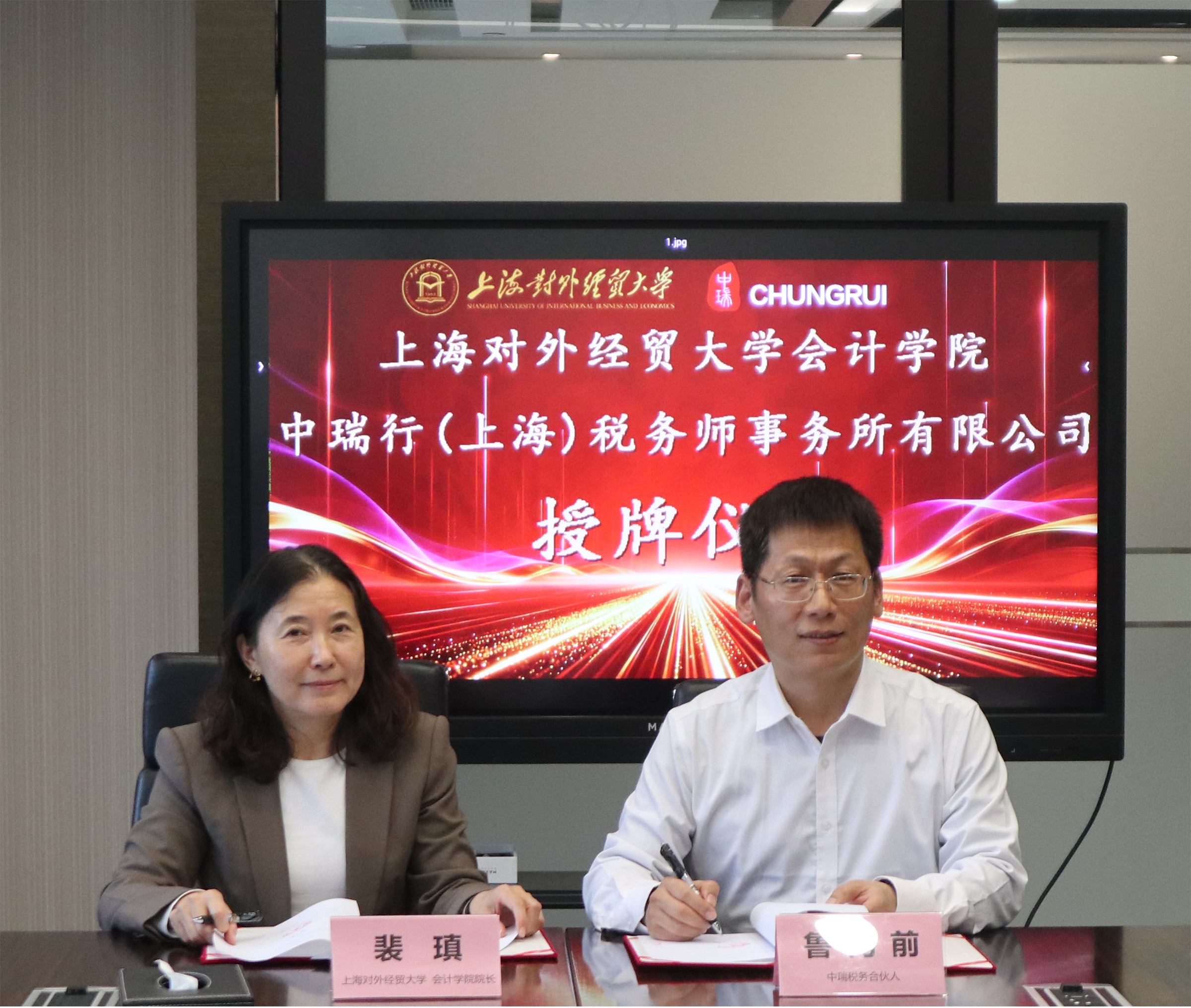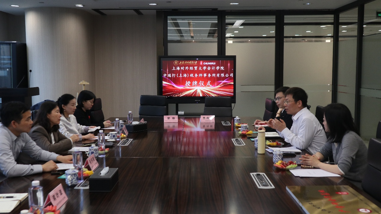 4月22日下午,会计学院与和信会计师事务所(特殊普通合伙)上海分所、中瑞行(上海)税务师事务所在中瑞集团上海公司举行产学研合作基地签约授牌仪式。中瑞税务集团合伙人鲁向前、税务经理朱春望、税务经理张晓苹、人事负责人邵佳,会计学院院长裴瑱、副院长杨慧辉、副院长何开刚、会计系主任陈丽英及教学秘书蒋叶波出席本次活动。