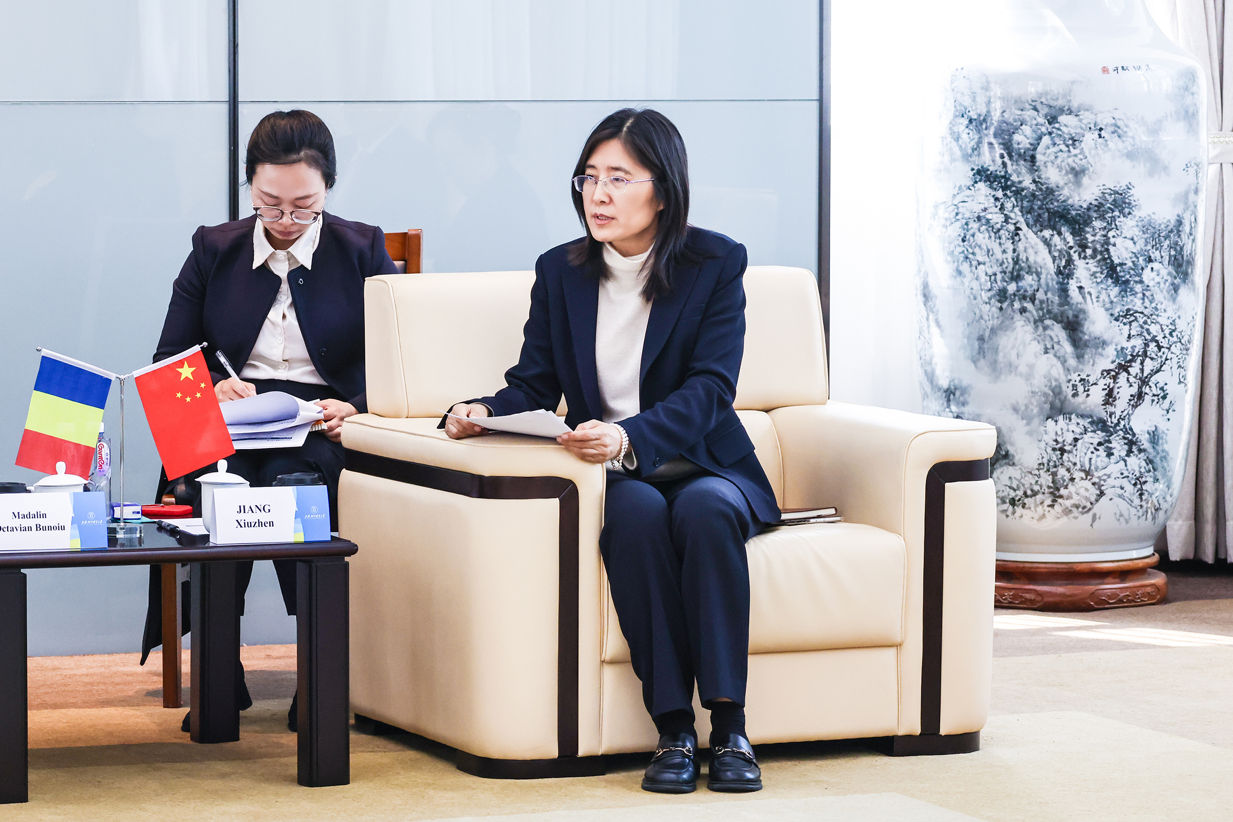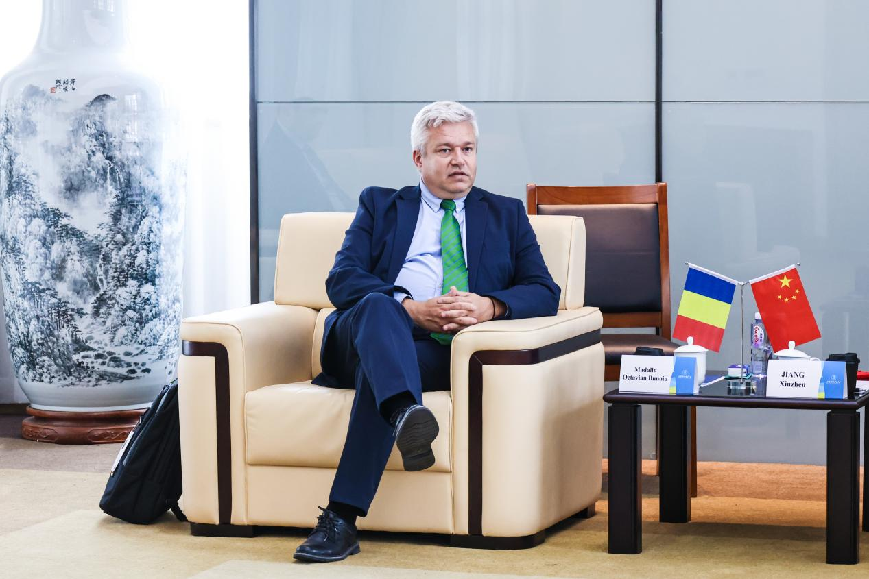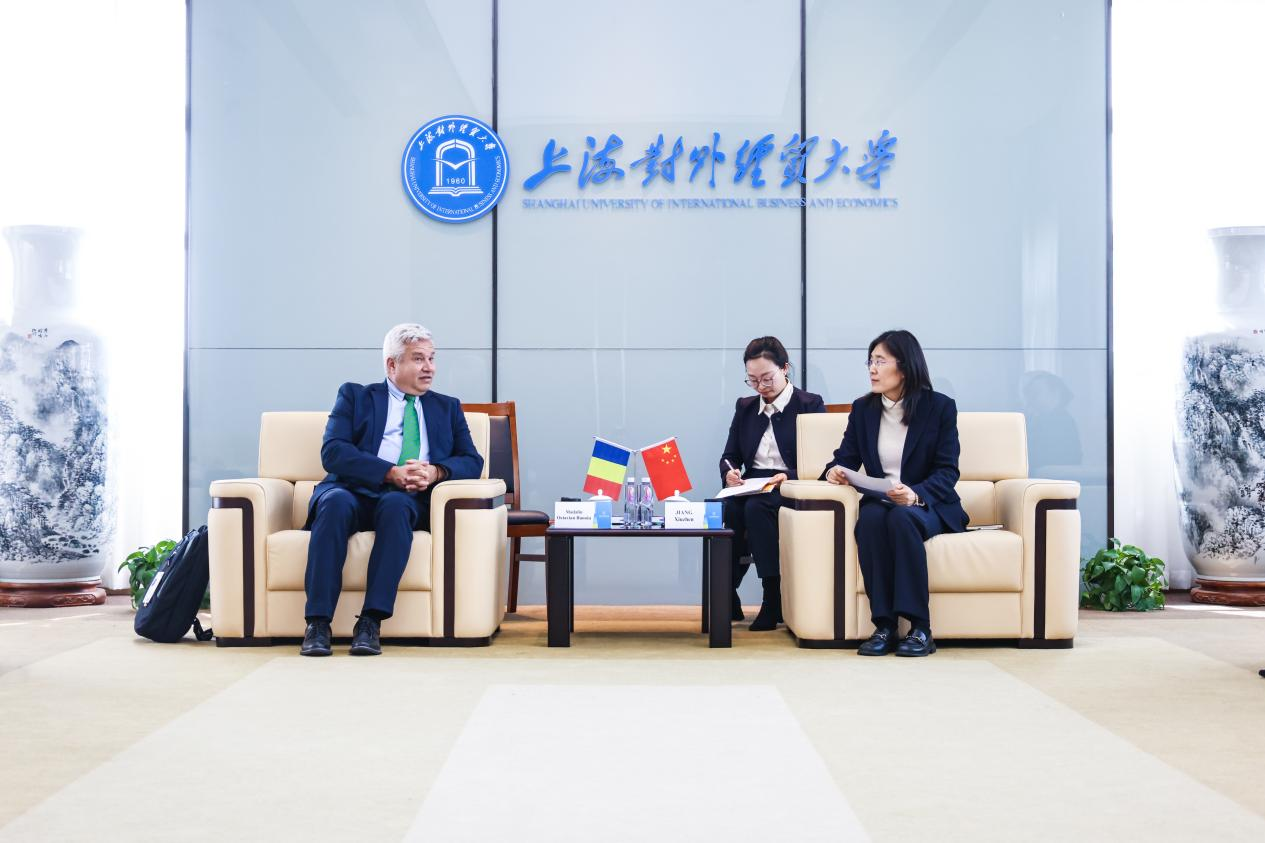 姜秀珍对代表团的到访表示热烈欢迎,并介绍了学校在办学特色、人才培养、学科布局与国际化发展等方面的基本情况。她回顾了两校自2020年建立校际合作关系以来取得的合作成果,并希望以此次高层会晤为新起点,两校全面对接优势资源,创新合作模式,在师生互访、学术研究、人才联合培养等方面探索更多可能,共同打造中罗经济教育合作的标杆项目,为推动共建“一带一路”和中国—中东欧国家合作贡献力量。
