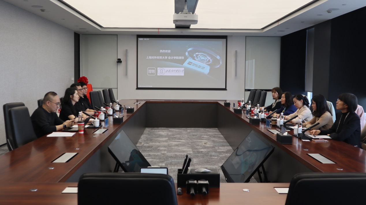 瞿孜文对会计学院一行的到来表示热烈欢迎,并介绍了得物近年来的业务发展布局。他表示,随着公司国际业务的快速拓展,企业对具备涉外财务管理、内审内控能力的复合型人才需求持续增加,期待通过与学院的深度合作,共同探索人才培养新路径。