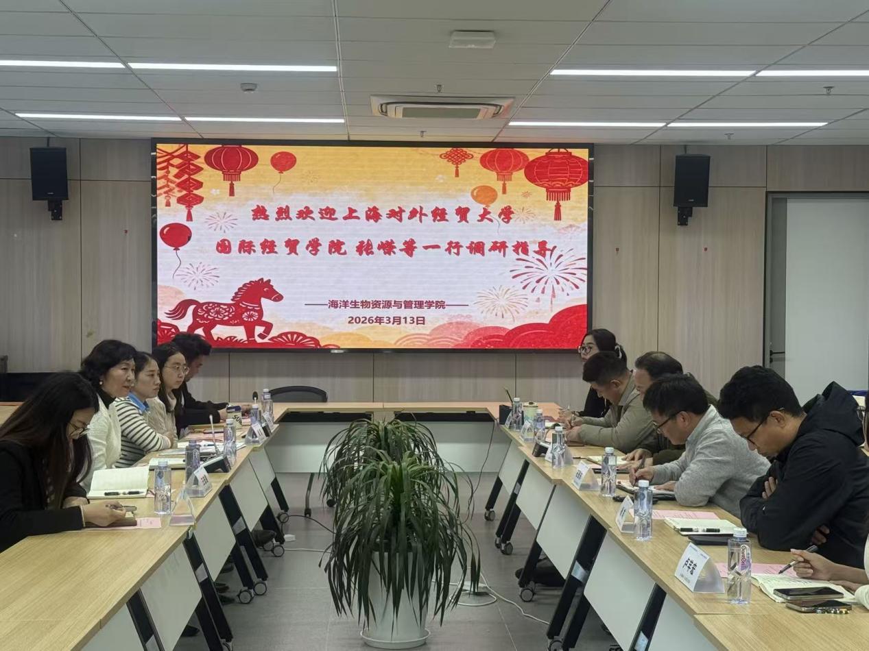 为深入推进立德树人机制综合改革试点工作落地见效,加强与兄弟院校的交流互鉴,3月13日下午,国际经贸学院党委书记张嵘带队,学院党委副书记董雪、专职组织员、辅导员代表一行赴上海海洋大学,专题调研交流立德树人机制综合改革试点工作。上海海洋大学校党委常委、海洋生物资源与管理学院党委书记郑卫东,学院党委副书记石张东、团委书记学工办主任张宜振、辅导员代表等热情接待调研团队一行。双方围绕立德树人机制综合改革中的难点痛点、核心任务、创新实践路径、育人质量评价等关键议题展开深入交流、共商育人良策。
