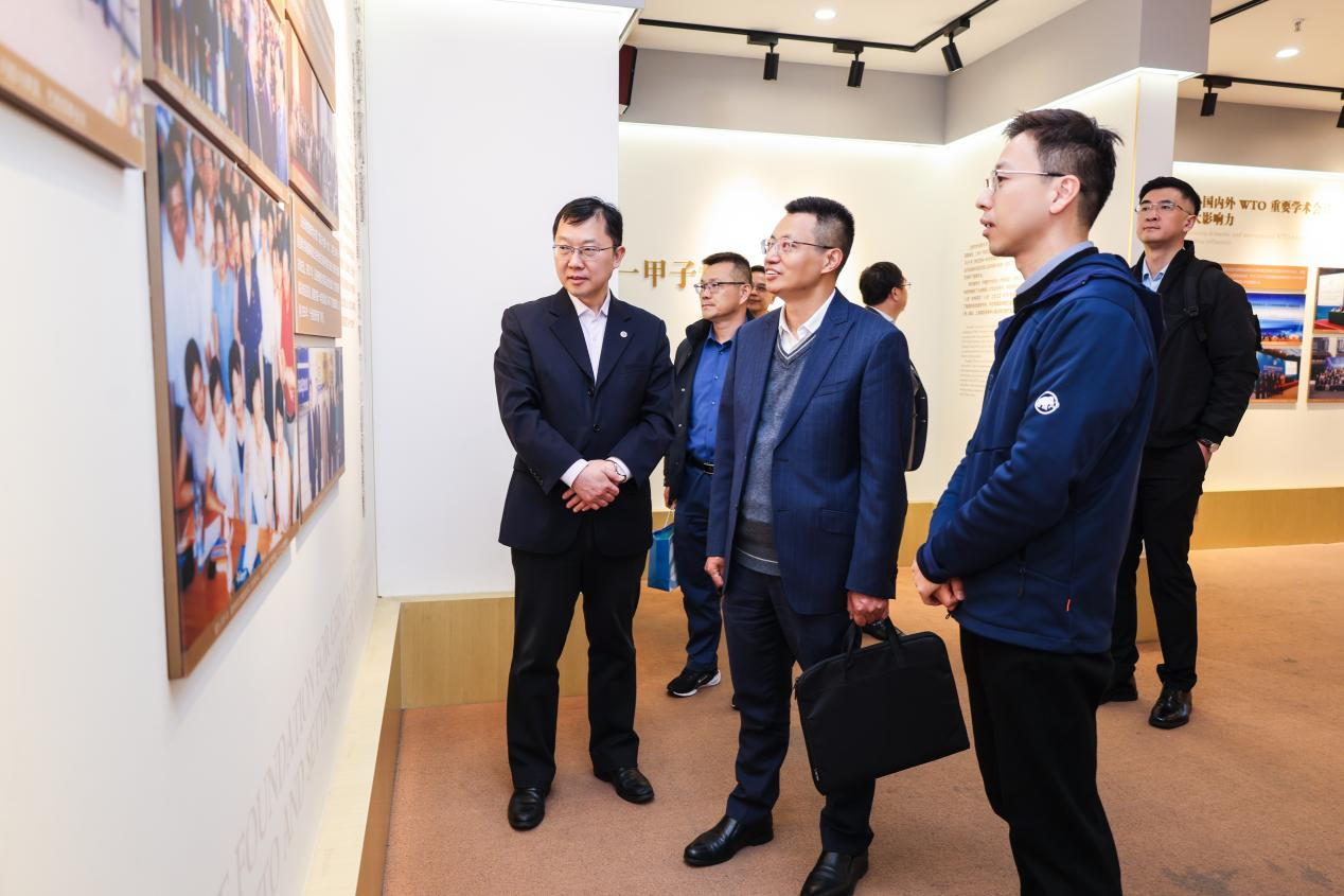 会前,童士清一行先后参观了学校博物馆展览、国际经贸创新与治理研究院暨决策咨询研究基地、WTO亚太培训中心。